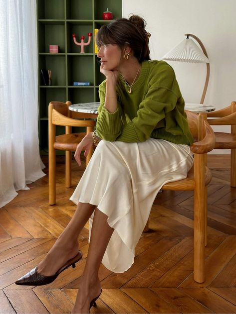 Sweater + Slip Skirt: Slip into silk and french tuck a sweater and add sleek pumps for an easy day to night look.